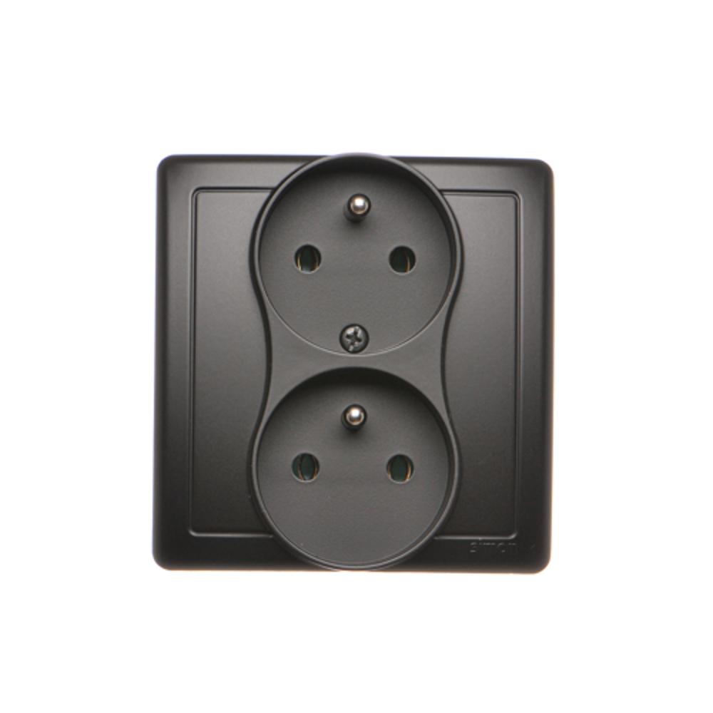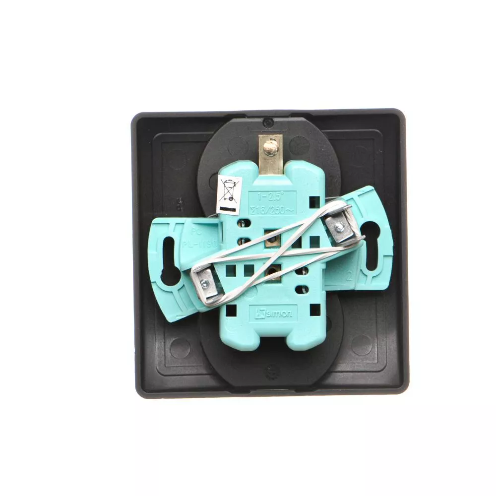 Simon Basic WMBW-102101-Y011 Gniazdo wtyczkowe z uziemieniem podwójne, z funkcją niezmienności faz, 16A, 250V~, zaciski śrubowe. Kompletne - nie do ramek; czarny