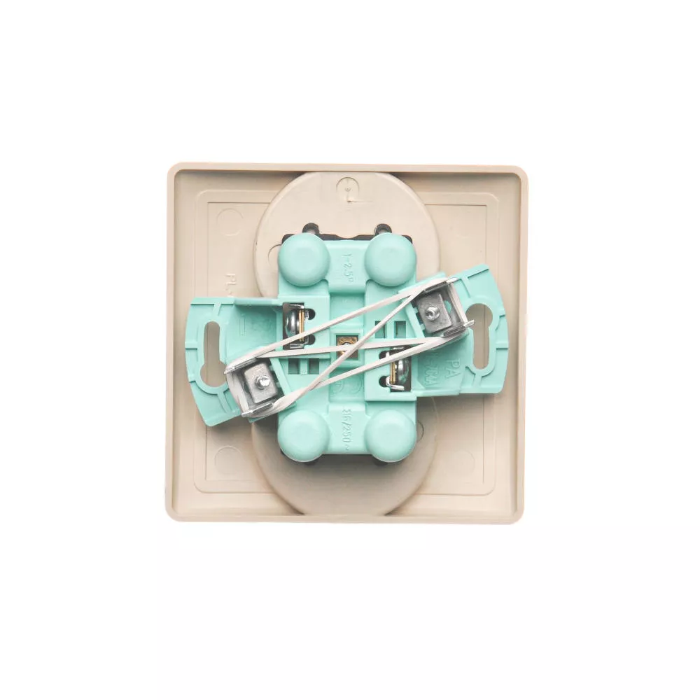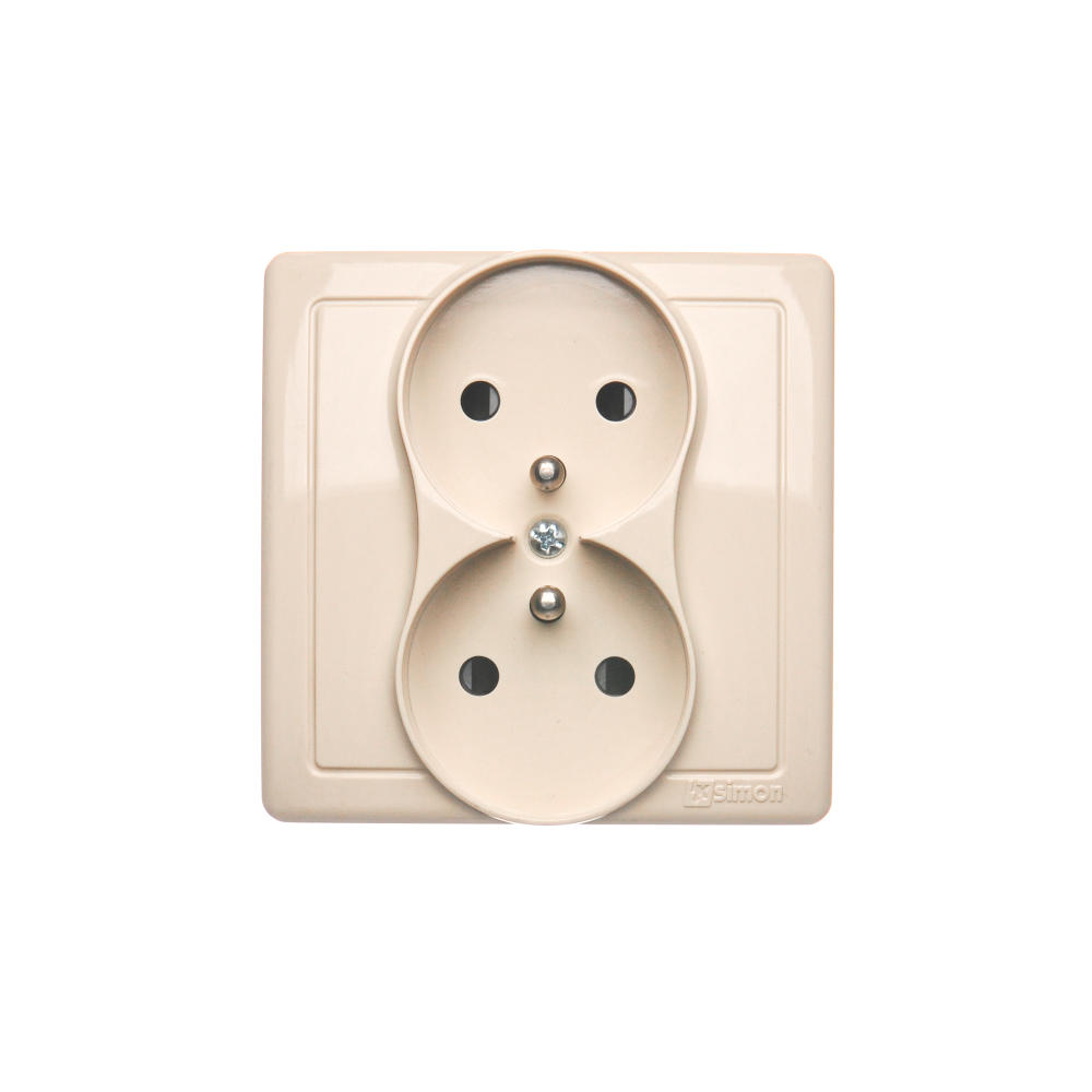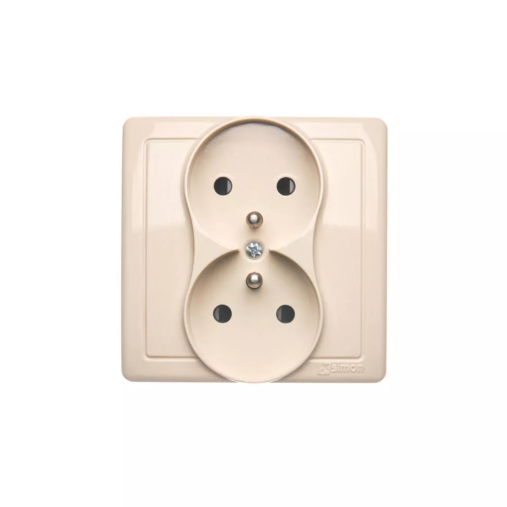 Simon Basic WMUW-10211x-9011 Gniazdo wtyczkowe z uziemieniem podwójne, monoblok, z przesłonami torów prądowych 16A, 250V~, zaciski śrubowe; beż Kompletne - nie do ramek