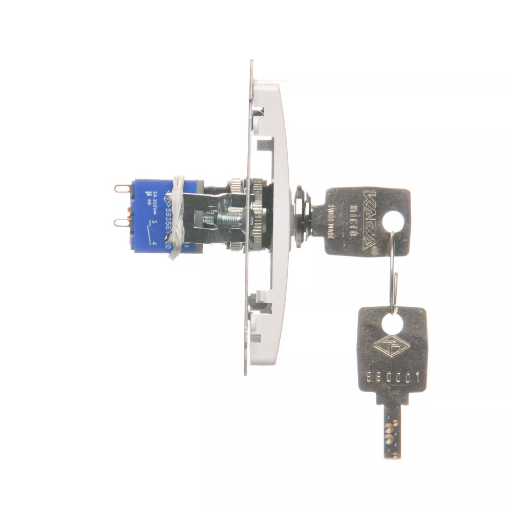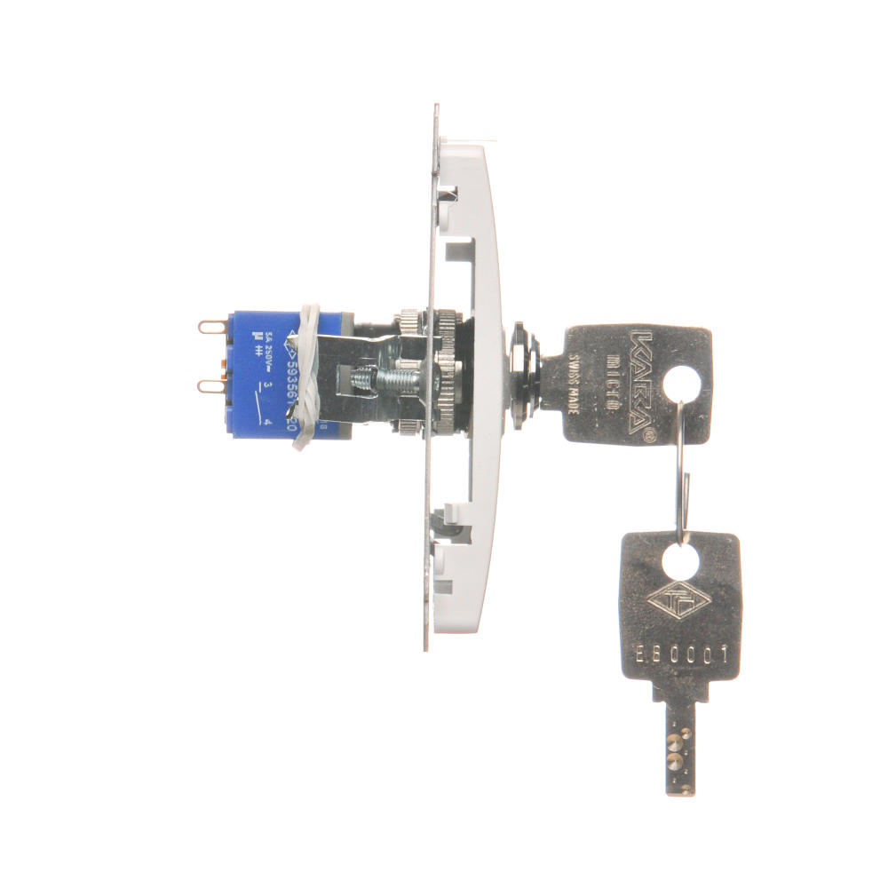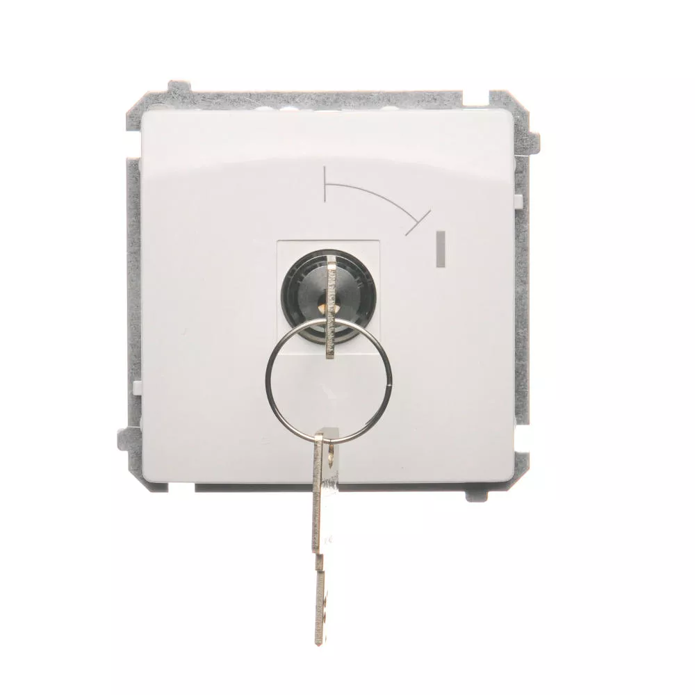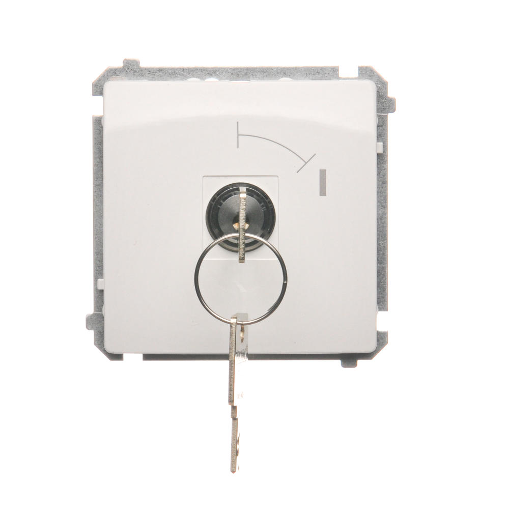 Simon Basic WMUL-0K01Px-1011 Łącznik chwilowy jednobiegunowy z kluczem, 2 pozycyjny, „0-I” styk N/O. Możliwość wyjęcia klucza tylko w pozycji 0; biały