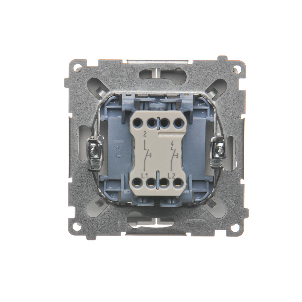 Simon Basic WMUL-0P0xx2-4011 Przycisk podwójny zwierny, dwuobwodowy: 2 wejścia, 2 wyjścia (moduł) 16AX, 250V~, szybkozłącza; srebrny mat