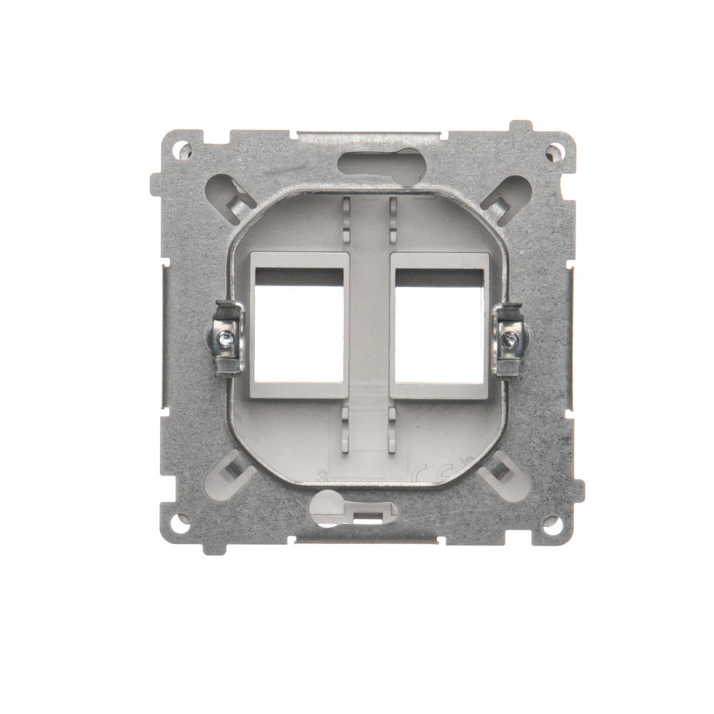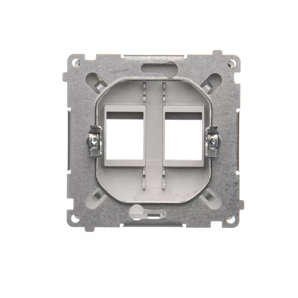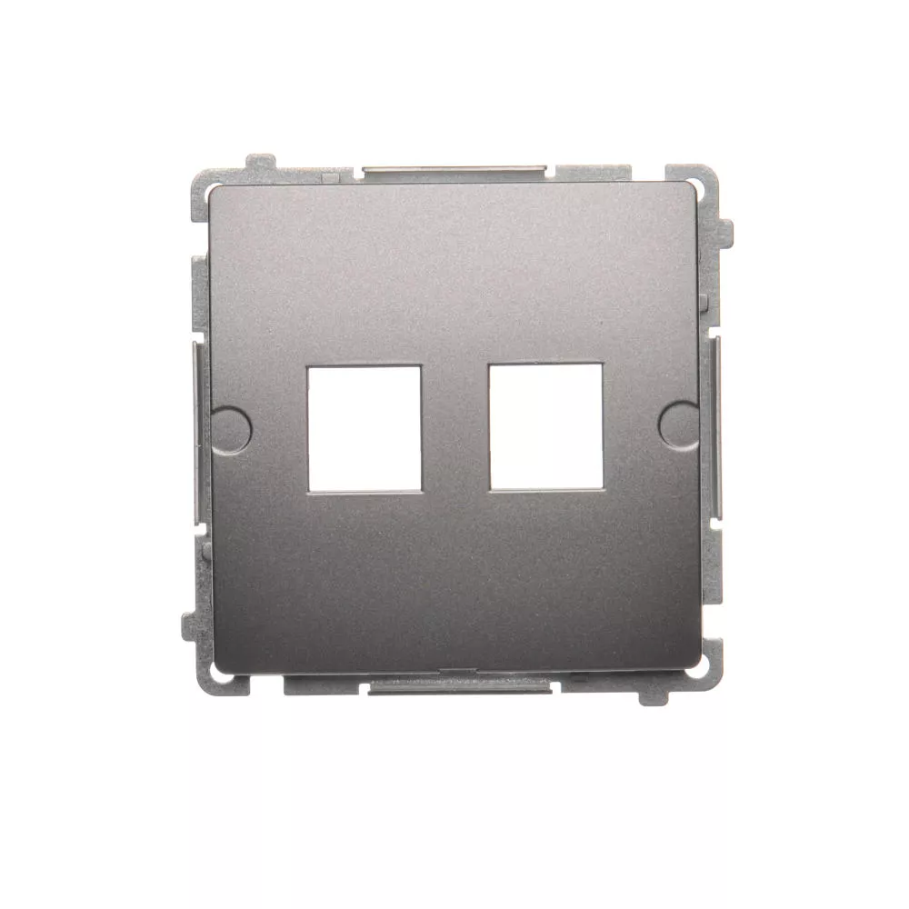 Simon Basic WMUK-P10000-J013 Pokrywa gniazd teleinformatycznych na Keystone płaska podwójna. Montaż na łapki lub wkręty; stal inox