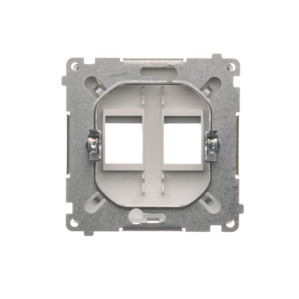 Simon Basic WMUK-P10000-4013 Pokrywa gniazd teleinformatycznych na Keystone płaska podwójna. Montaż na łapki lub wkręty; srebrny mat