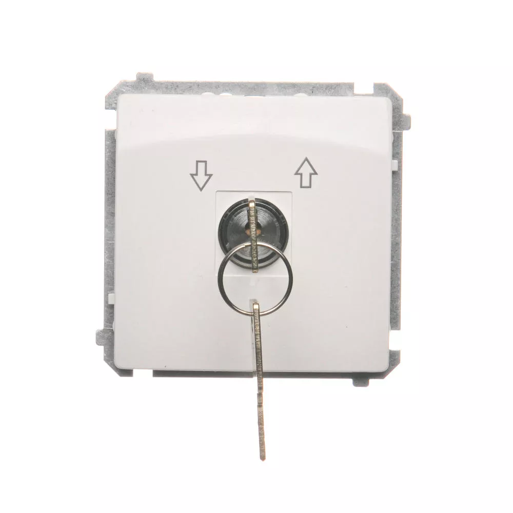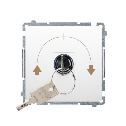 Simon Basic WMUL-0K04Px-1011 Łącznik chwilowy roletowy z kluczem, 3 pozycyjny, „I-0-II" 2 styki N/O. Możliwość wyjęcia klucza tylko w pozycji 0; biały