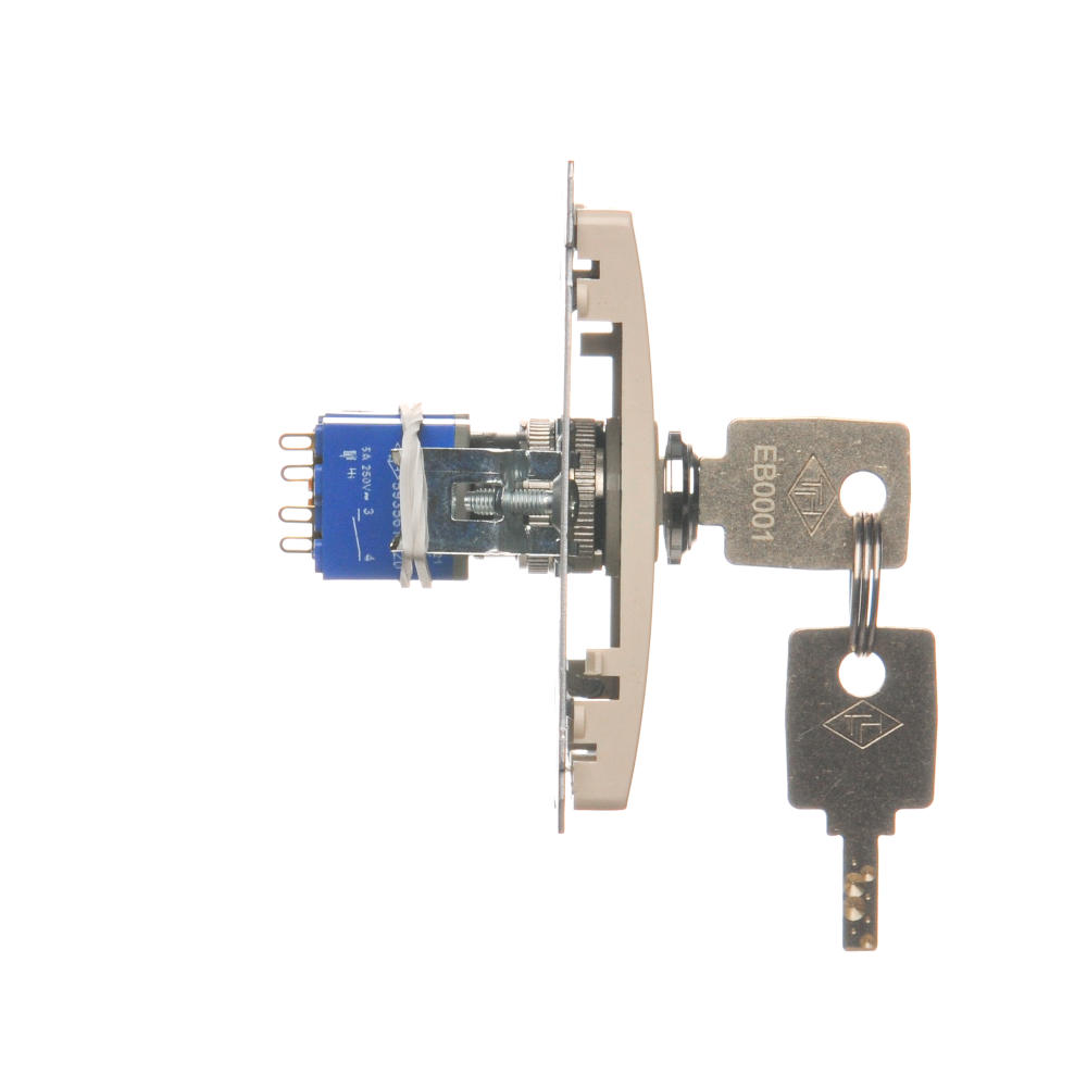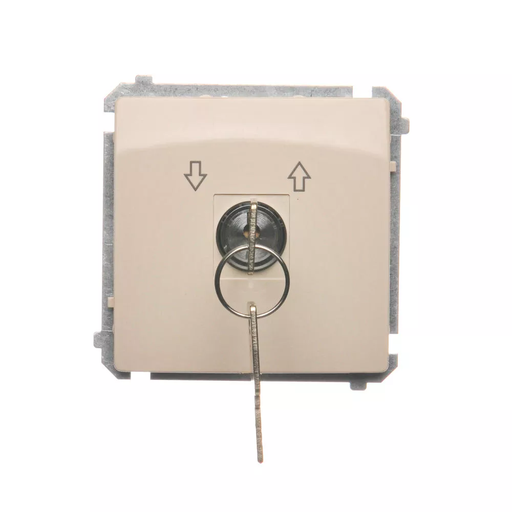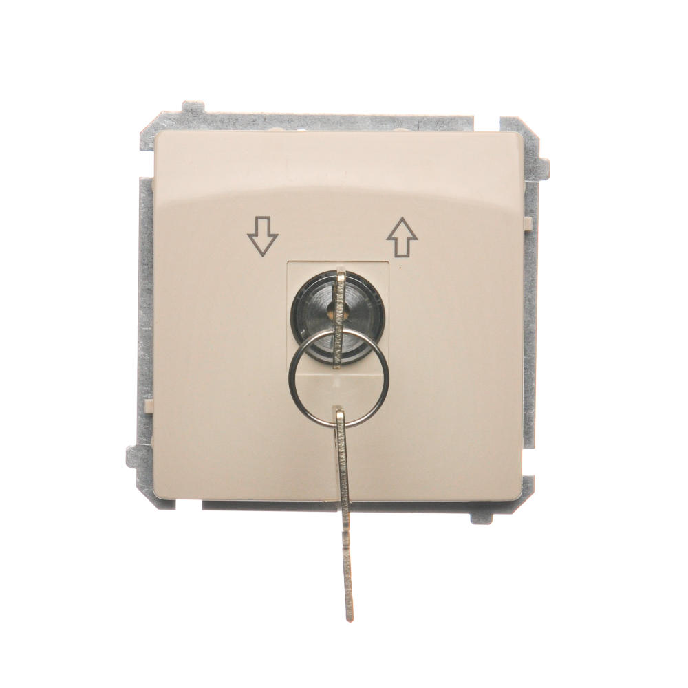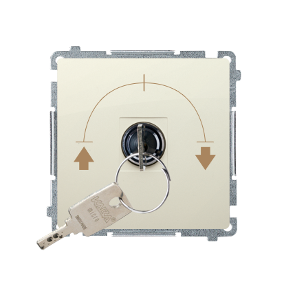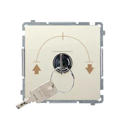 Simon Basic WMUL-0K04Px-9011 Łącznik chwilowy roletowy z kluczem, 3 pozycyjny, „I-0-II" 2 styki N/O. Możliwość wyjęcia klucza tylko w pozycji 0; beż