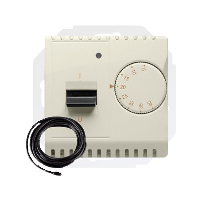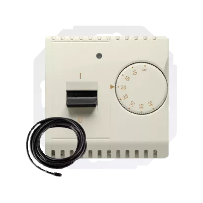 Simon Basic WMUR-011xxx-9011 Regulator temperatury z czujnikiem zewnętrznym, 16A, 230V~. Montaż gniazda na wkręty do puszki; beż
