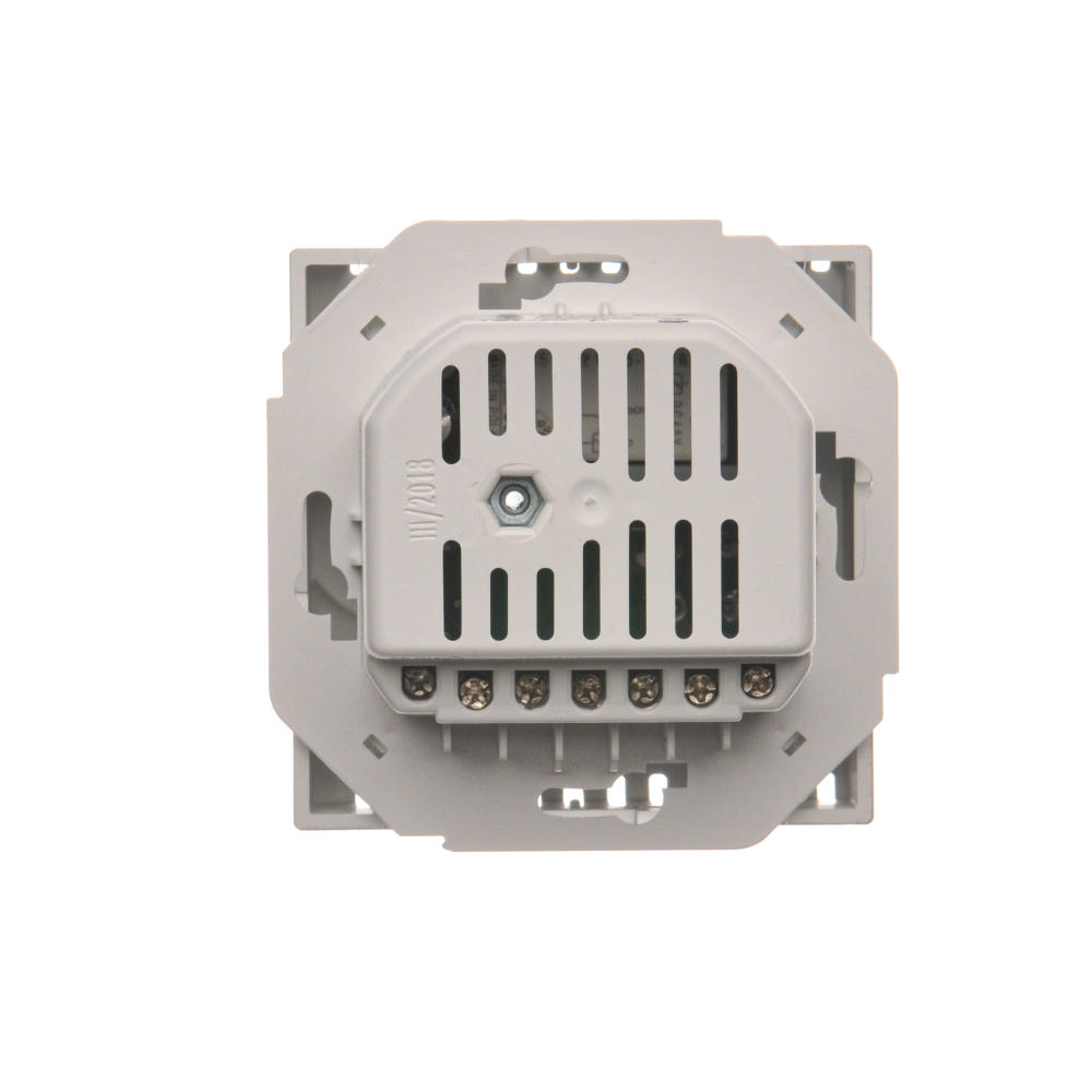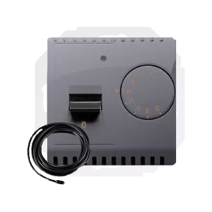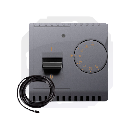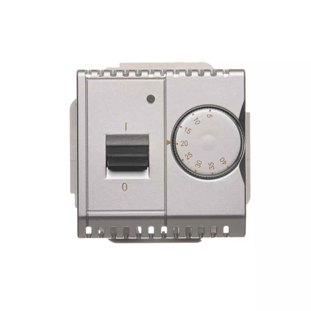 Simon Basic WMUR-011xxx-4011 Regulator temperatury z czujnikiem zewnętrznym, 16A, 230V~. Montaż gniazda na wkręty do puszki; srebrny mat