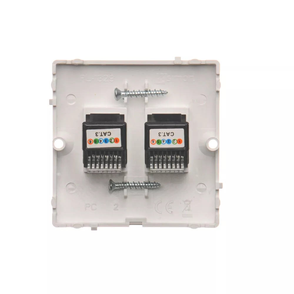 Simon Basic WMUT-0020x2-1011 Gniazdo telefoniczne RJ12 podwójne (moduł). Montaż gniazda na wkręty do puszki; biały