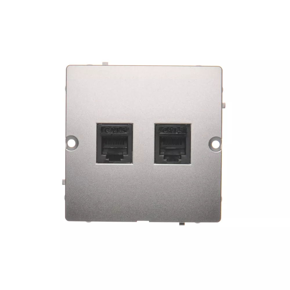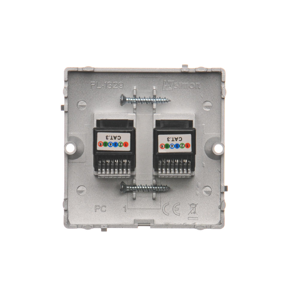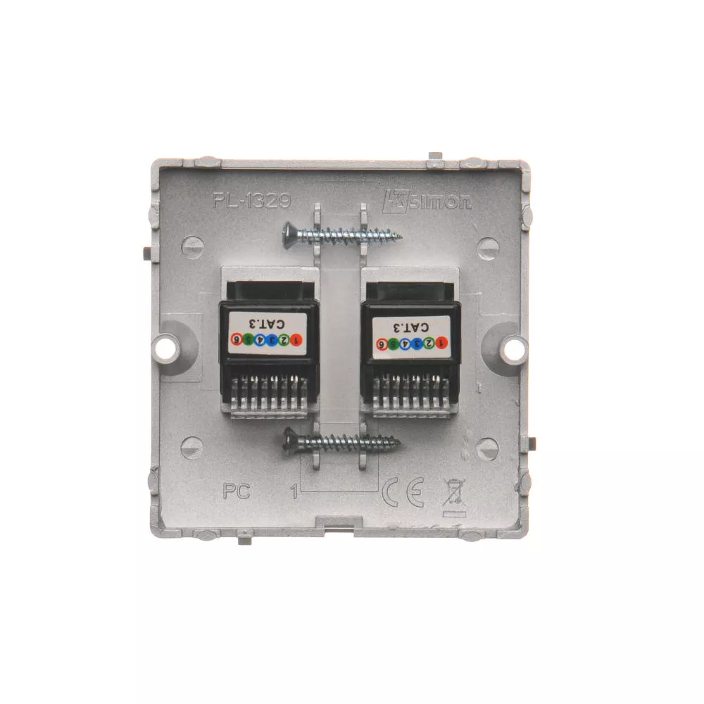 Simon Basic WMUT-0020x2-4011 Gniazdo telefoniczne RJ12 podwójne (moduł). Montaż gniazda na wkręty do puszki; srebrny mat