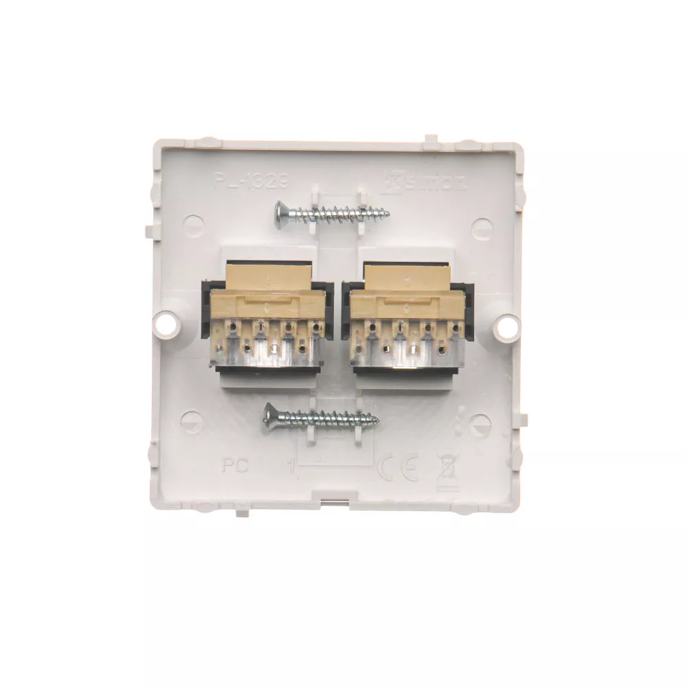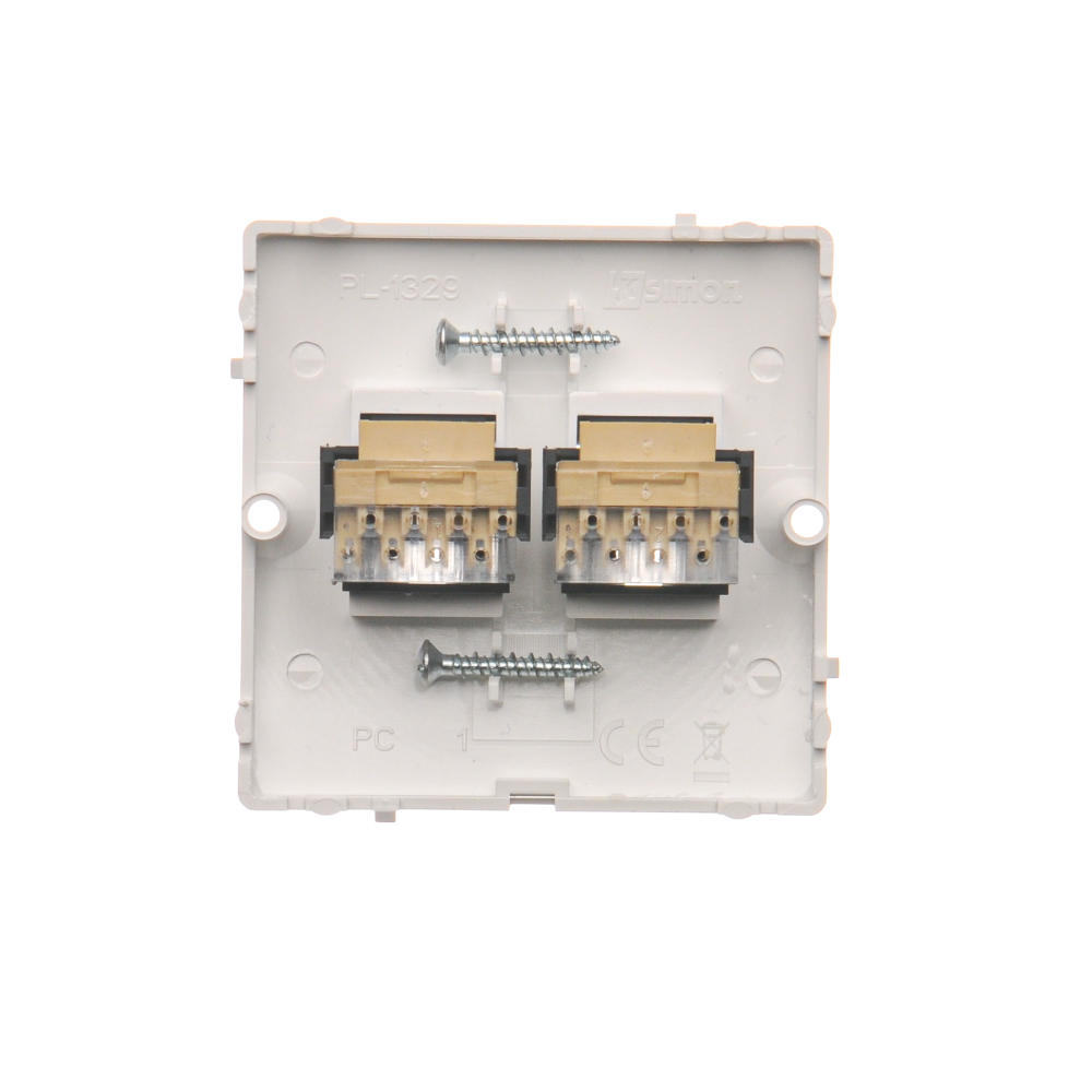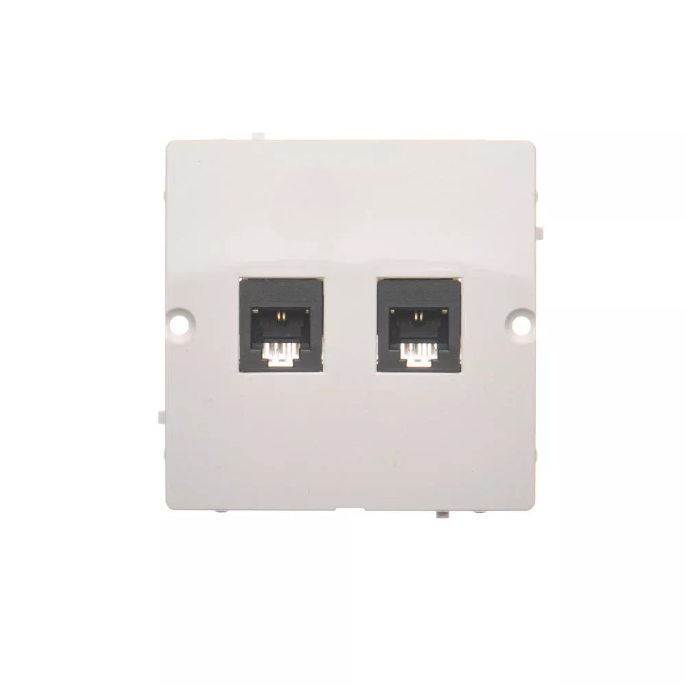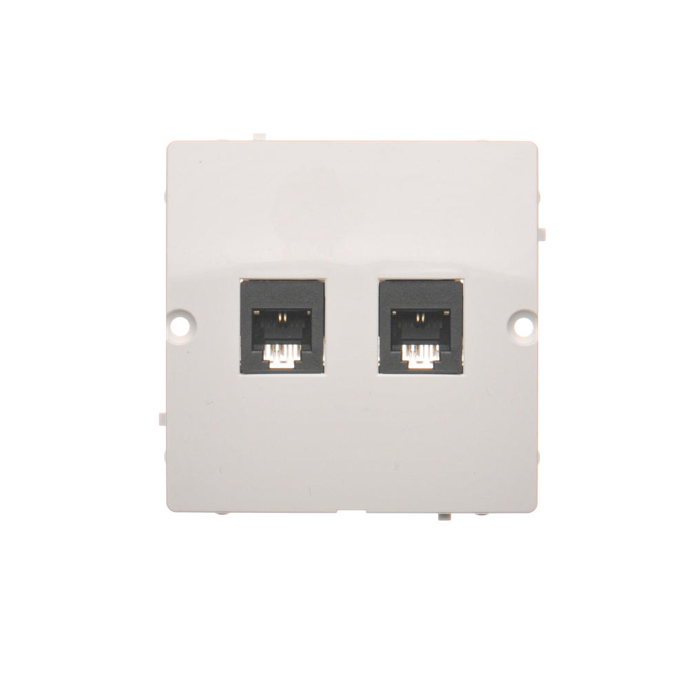 Simon Basic WMUT-0320x2-1011 Gniazdo telefoniczne RJ11 podwójne (moduł). Montaż gniazda na wkręty do puszki; biały
