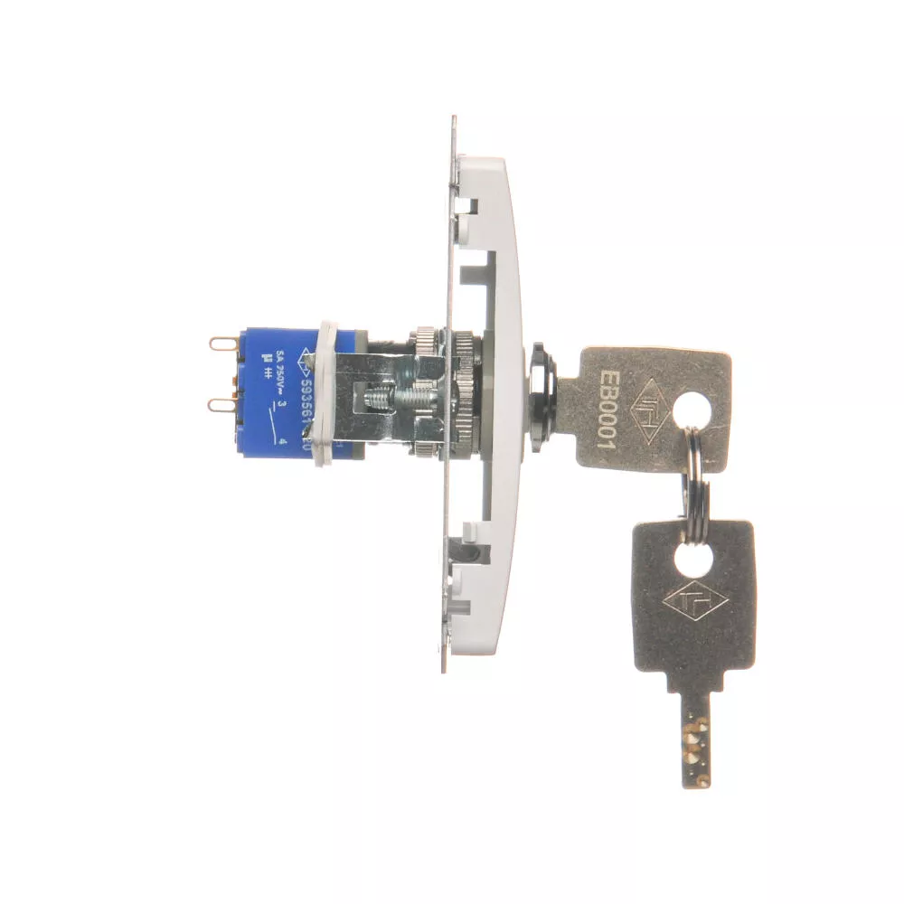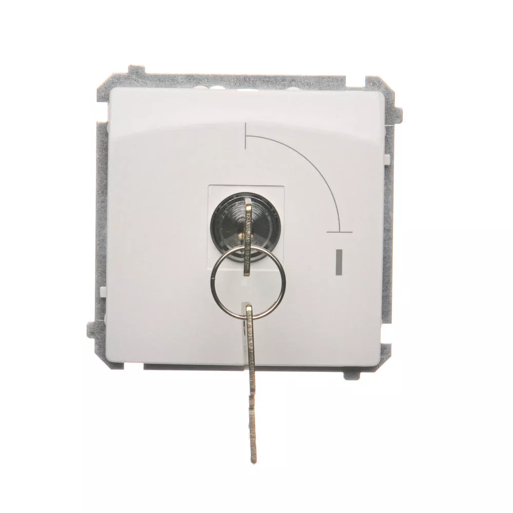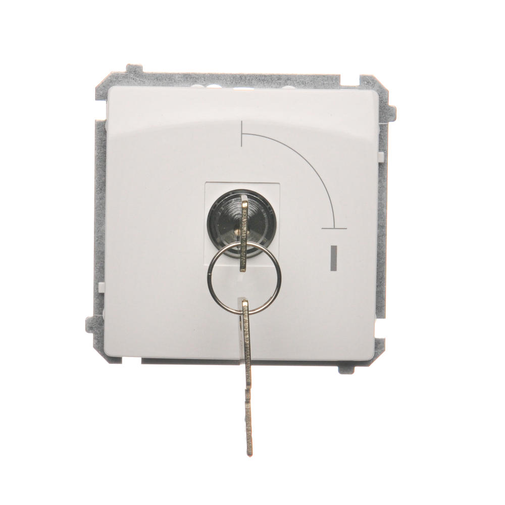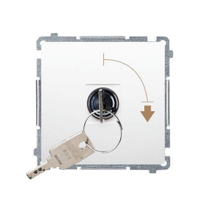 Simon Basic WMUL-0K01xx-1011 Łącznik jednobiegunowy z kluczem, 2 pozycyjny, „0-I” styk N/O. Możliwość wyjęcia klucza w każdej pozycji; biały