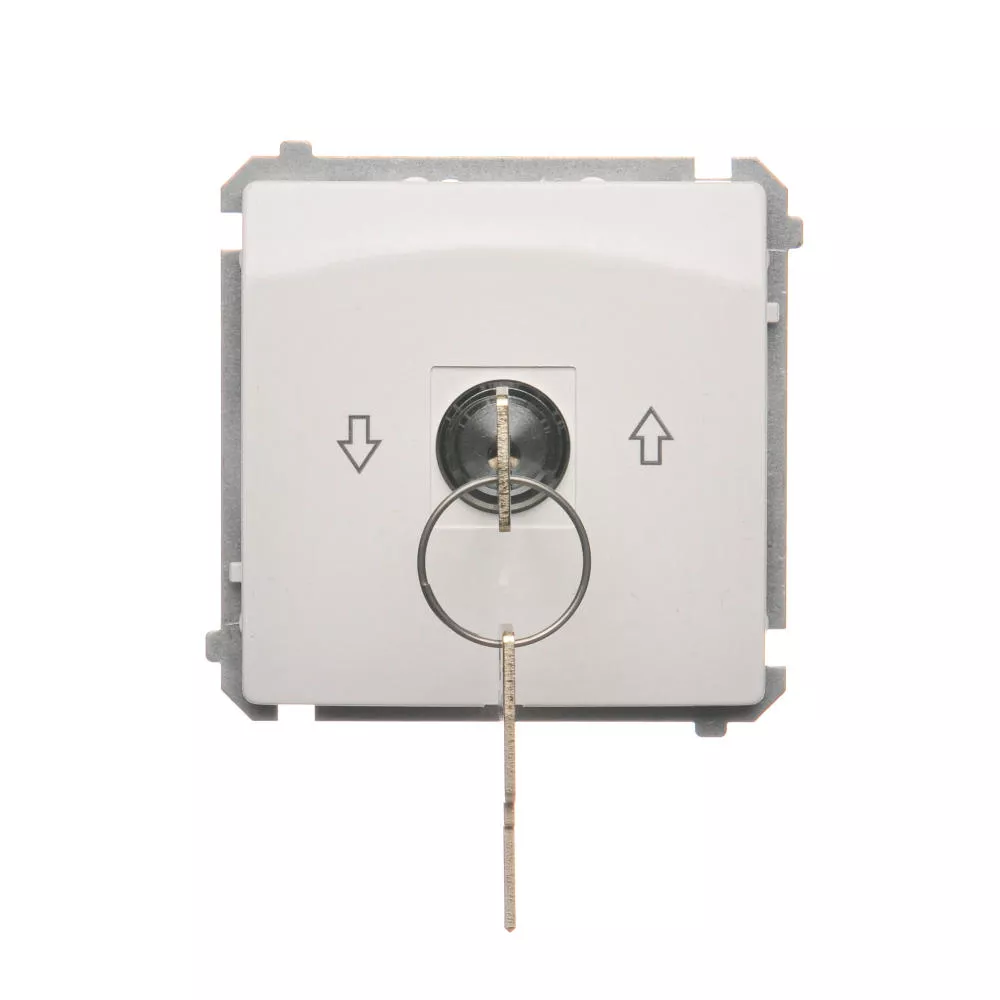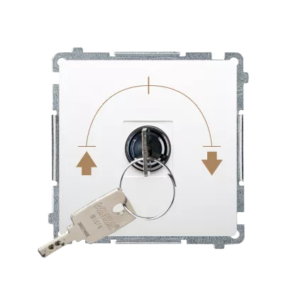 Simon Basic WMUL-0K04xx-1011 Łącznik roletowy z kluczem, 3 pozycyjny, „I-0-II” 2 styki N/O. Możliwość wyjęcia klucza w każdej pozycji; biały