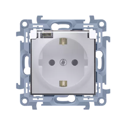 Simon 10 WC-GSZ1Bxx-01-11Ax Gniazdo wtyczkowe Schuko do wersji IP44 z uszczelką - klapka transparetna (moduł) 16A, 250V~, zaciski śrubowe; biały