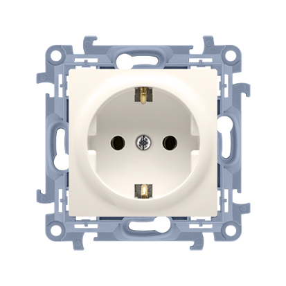 Simon 10 WC-GSZ1CZx-01-41xx Gniazdo wtyczkowe z uziemieniem pojedyncze z przesłonami torów prądowych (moduł) 16 A, 250 V~, szybkozłącza; kremowy