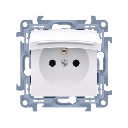 Simon 10 WC-GZ1BCUxx-01-11x Gniazdo wtyczkowe IP44 bez uszczelki, klapka w kolorze pokrywy (moduł) 16A, 250V~, szybkozłącza; biały !Wymagana uszczelka ramki