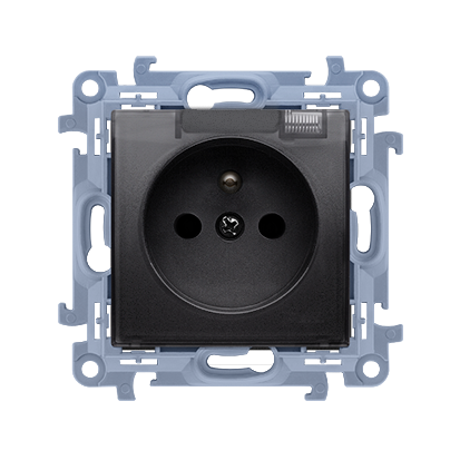 Simon 10 WC-GZ1BCUXX-01-49A Gniazdo wtyczkowe IP44 bez uszczelki, klapka transparentna (moduł) 16A, 250V~, szybkozłącza; czarny !Wymagana uszczelka ramki