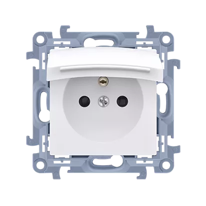 Simon 10 WC-GZ1BCZxx-01-11x Gniazdo wtyczkowe IP44 z uszczelką z przesłonami torów prądowych, klapka w kolorze pokrywy (moduł) 16A, 250V~, szybkozłącza; biały