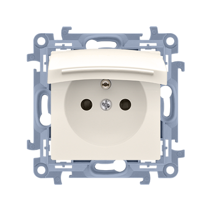 Simon 10 WC-GZ1BUxx-01-41xx Gniazdo wtyczkowe z uziemieniem do wersji IP44 bez uszczelki - klapka w kol. pokrywy (moduł) 16A, 250V~, zac. śrub.; kremowy Wymagana uszczelka ramki