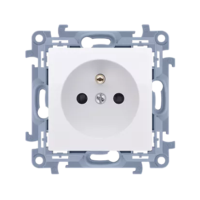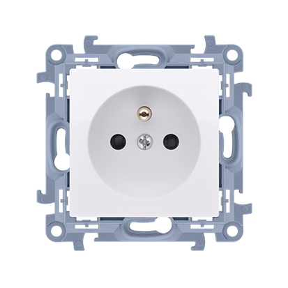 Simon 10 WC-GZ1CZxxx-01-11x Gniazdo wtyczkowe z uziemieniem pojedyncze z przesłonami torów prądowych (moduł) 16A, 250V~, szybkozłącza; biały