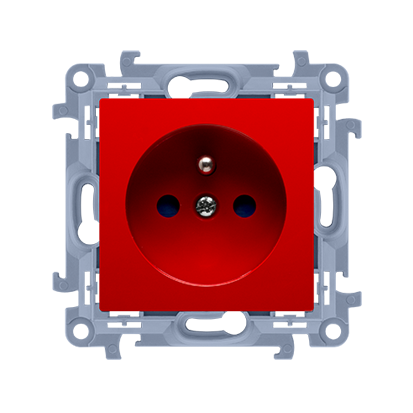 Simon 10 WC-GZ1CZxxx-01-22x Gniazdo wtyczkowe z uziemieniem pojedyncze z przesłonami torów prądowych (moduł) 16A, 250V~, szybkozłącza. Kolor czerwony