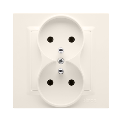 Simon 10 WC-GZ2xxxx-01-41xx Gniazdo wtyczkowe z uziemieniem podwójne, monoblok, 16A, 250V~, zaciski śrubowe; kremowy Kompletne - nie do ramek