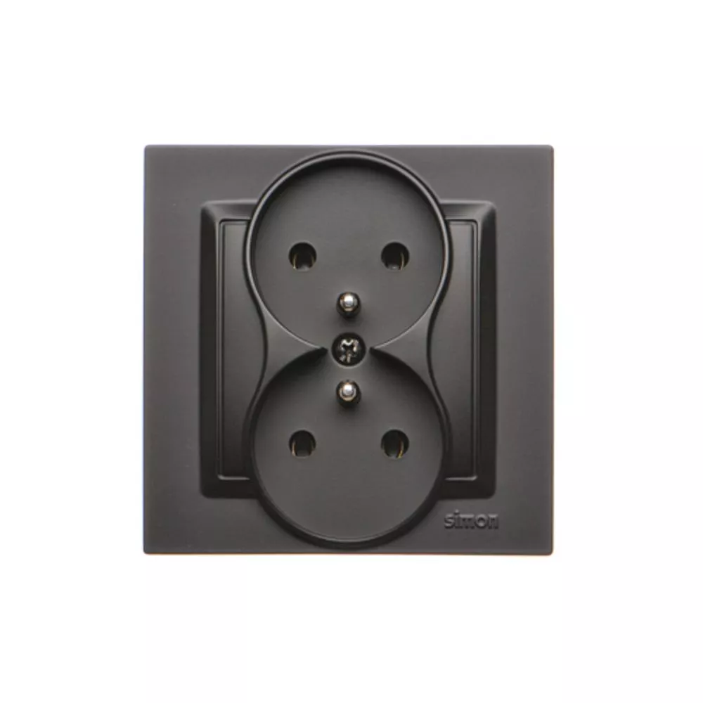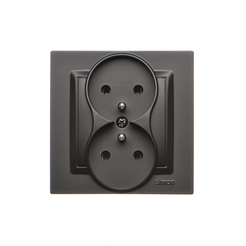 Simon 10 WC-GZ2XXXX-01-49XX Gniazdo wtyczkowe z uziemieniem podwójne, monoblok, 16A, 250V~, zaciski śrubowe; czarny Kompletne - nie do ramek
