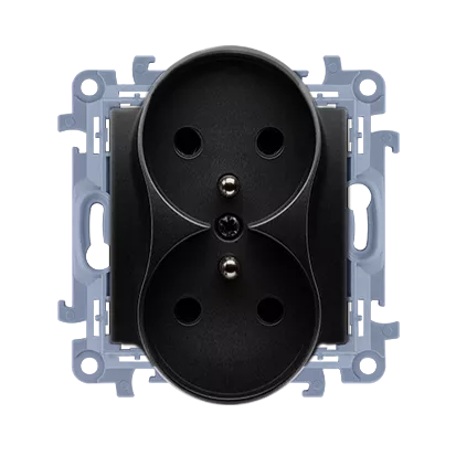 Simon 10 WC-GZ2MZxx-01-49xx Gniazdo wtyczkowe z uziemieniem podwójne z przesłonami torów prądowych (moduł) 16A, 250V~, zaciski śrubowe; czarny