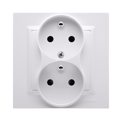 Simon 10 WC-GZ2YZxxxxx-11xx Gniazdo wtyczkowe z uziemieniem podwójne, z funkcją niezmienności faz, z przesłonami, 16A, 250V~, zaciski śrubowe. Kompletne - nie do ramek; biały