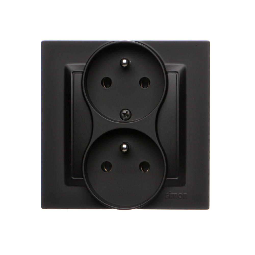 Simon 10 WC-GZ2YZxxxxx-49xx Gniazdo wtyczkowe z uziemieniem podwójne, z funkcją niezmienności faz, z przesłonami, 16A, 250V~, zaciski śrubowe. Kompletne - nie do ramek; czarny