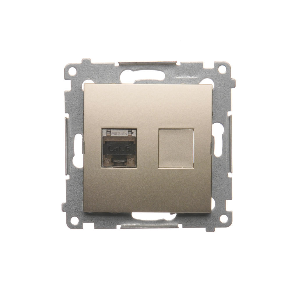 Simon 54 WMDK-0630xx-044 Gniazdo komputerowe pojedyncze RJ45 kategoria 6, ekranowane z przesłoną przeciwkurzową (moduł); złoty mat