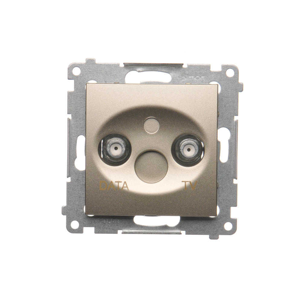 Simon 54 WMDA-07xxxx-044 Gniazdo TV-DATA. Dwa porty wyjściowe typu "F" (moduł). Częstotliwość dla wejścia 5-1000 MHz; złoty mat