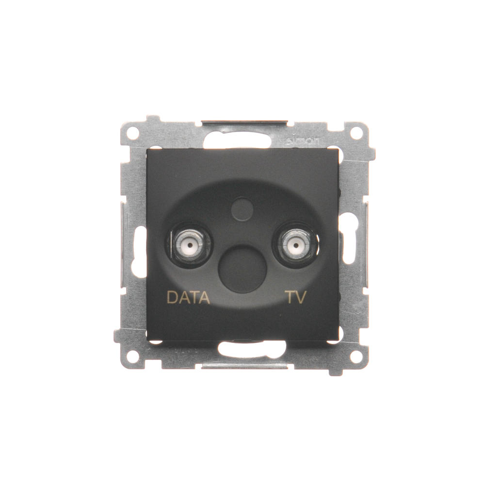 Simon 54 WMDA-07xxxx-049 Gniazdo TV-DATA. Dwa porty wyjściowe typu "F" (moduł). Częstotliwość dla wejścia 5-1000 MHz; czarny