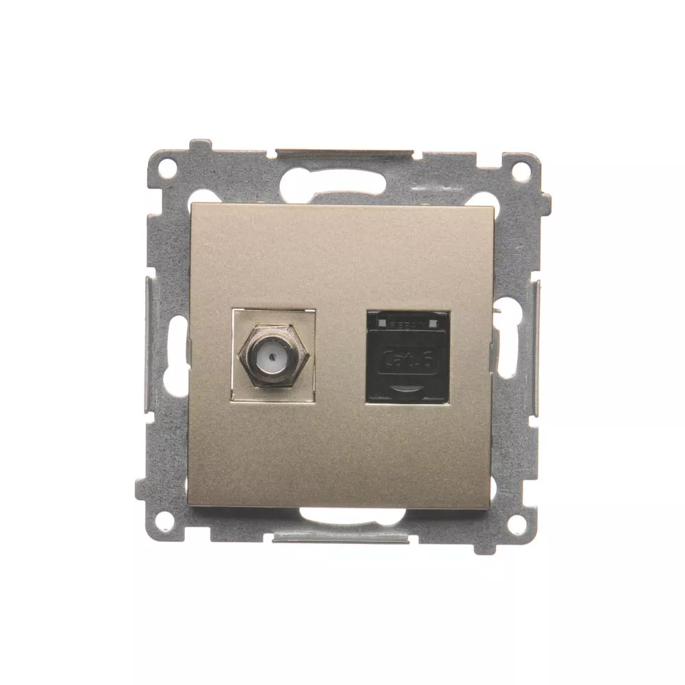 Simon 54 WMDA-0510xx-044 Gniazdo antenowe typu "F" + RJ45 kat.6 (moduł); złoty mat