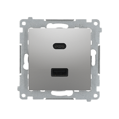 Simon 54 WMDZ-EC2CAx-043 Ładowarka 2xUSB C+A Quick Charge 5/9/12V (moduł), 3.1 A, 5V DC, 230V; srebrny mat Koniec produkcji zamiennik: DEC2CAQ.01/43