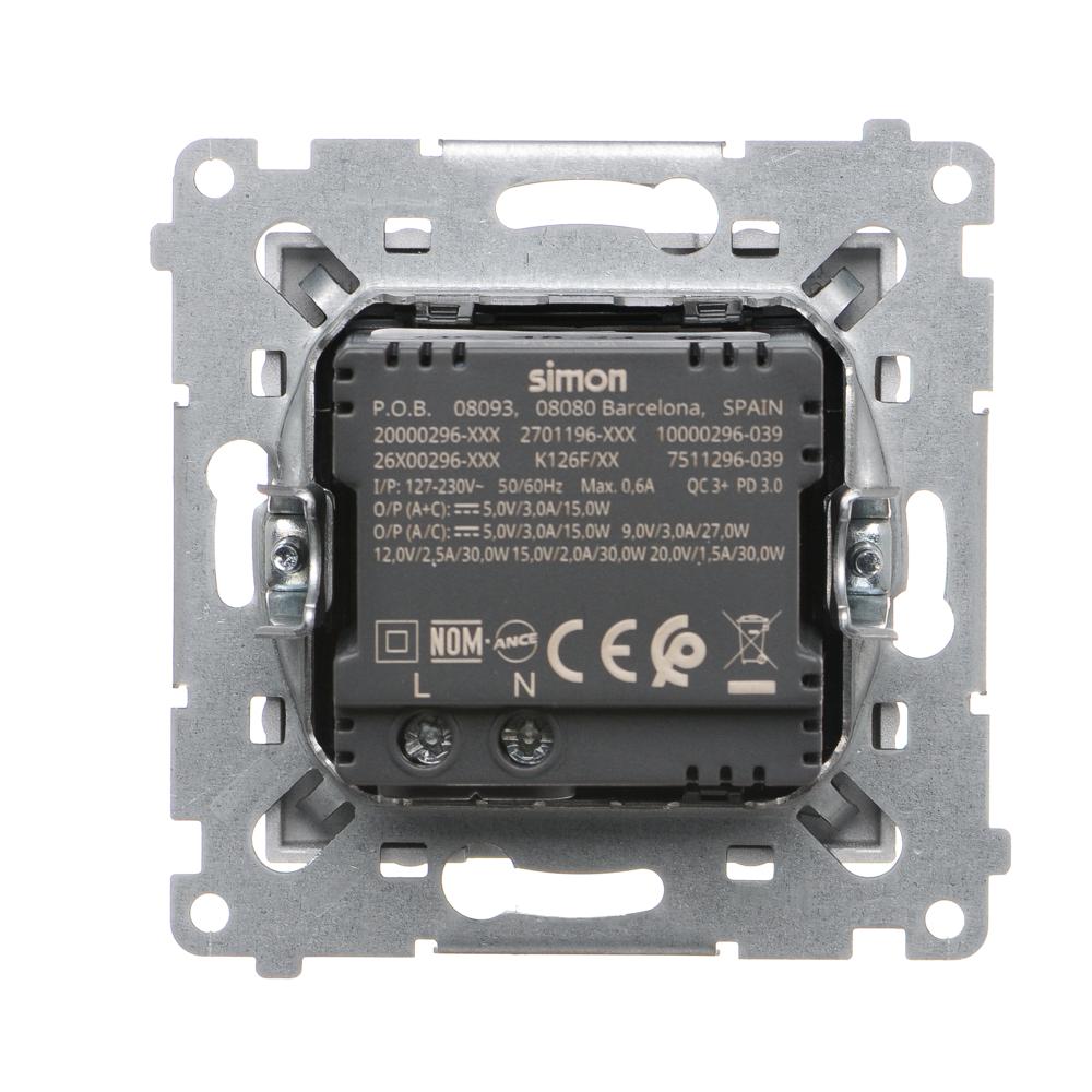 Simon 54 WMDZ-EC2CAQ-043 Ładowarka USB C+A (moduł), 30W, 230V; srebrny mat