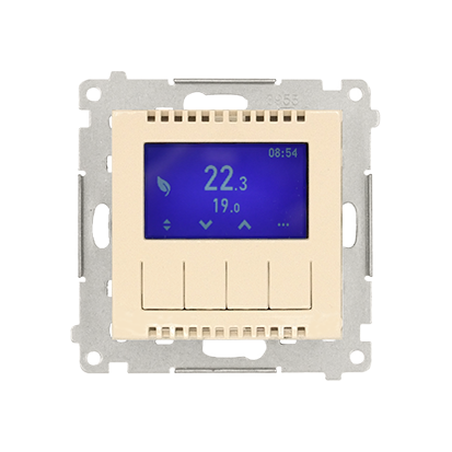 Simon 54 WMDR-17xxx1-041 Termostat programowalny z wyświetlaczem z wew/zewn czujnikiem temperatury, bez sondy (moduł) 16(2) A, 230V~; kremowy