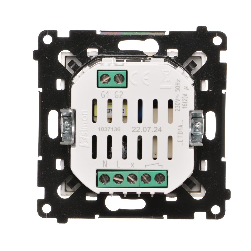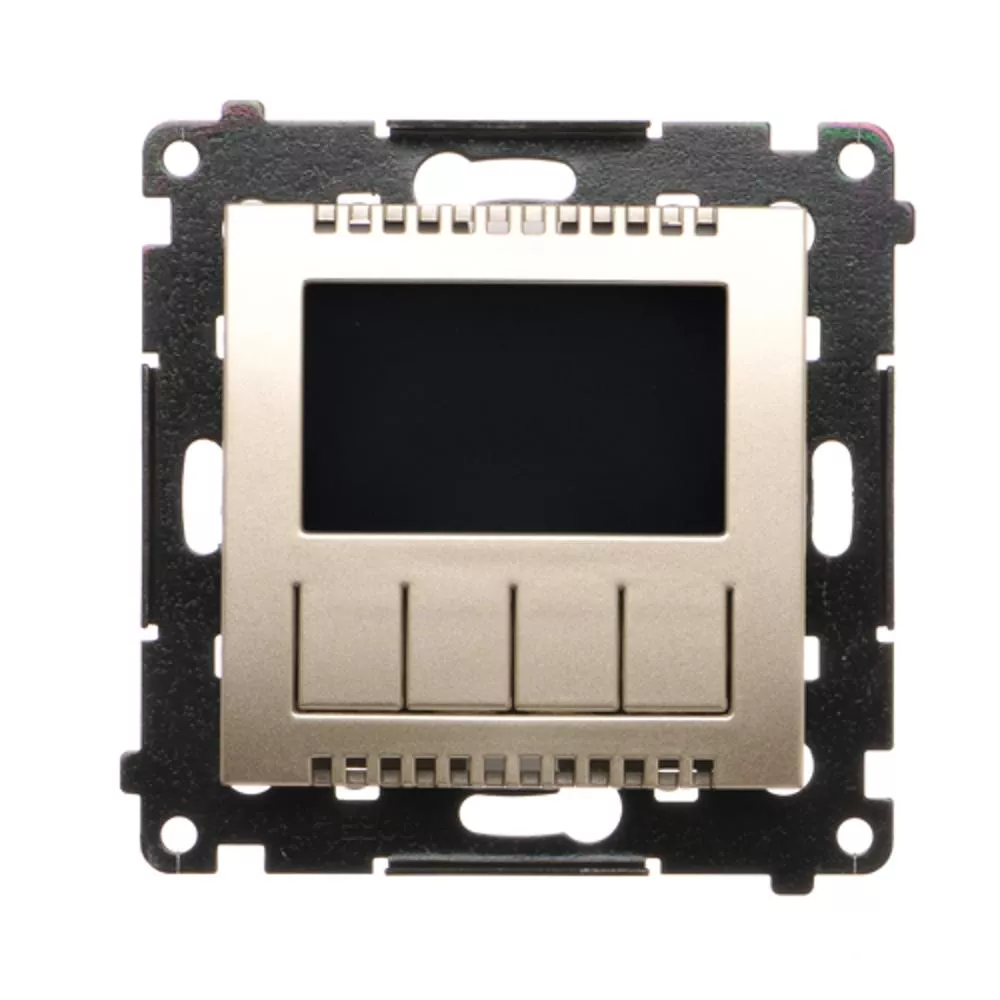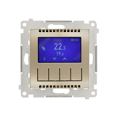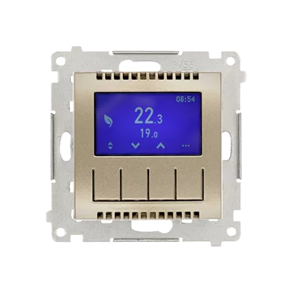 Simon 54 WMDR-17xxx1-044 Termostat programowalny z wyświetlaczem z wew/zewn czujnikiem temperatury, bez sondy (moduł) 16(2) A, 230V~; złoty mat
