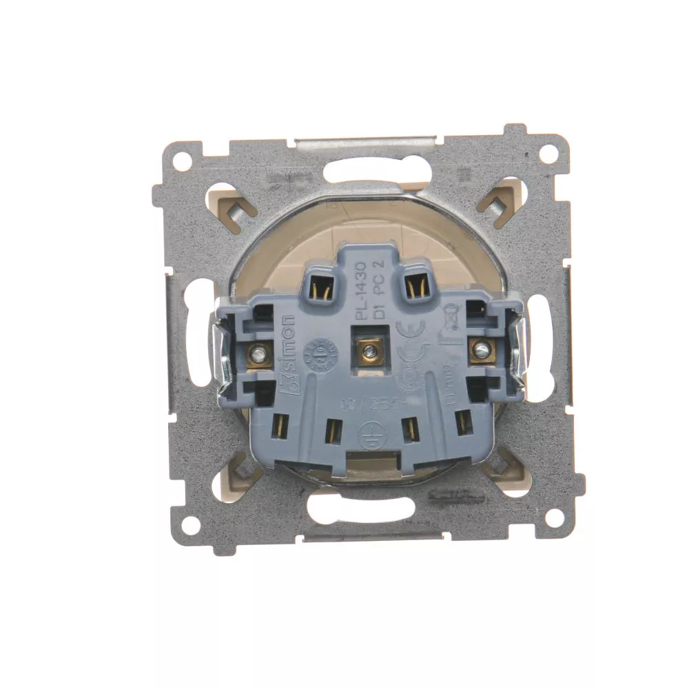 Simon 54 WMDW-00101x-041 Gniazdo wtyczkowe bez uziemienia z przesłonami (moduł) 16A, 250V~, zaciski śrubowe; kremowy
