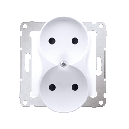 Simon 54 WMDW-00200M-011 Gniazdo wtyczkowe bez uziemienia z przesłonami podwójne (moduł) 16A, 250V~, zaciski śrubowe; biały Do ramek S54 PREMIUM