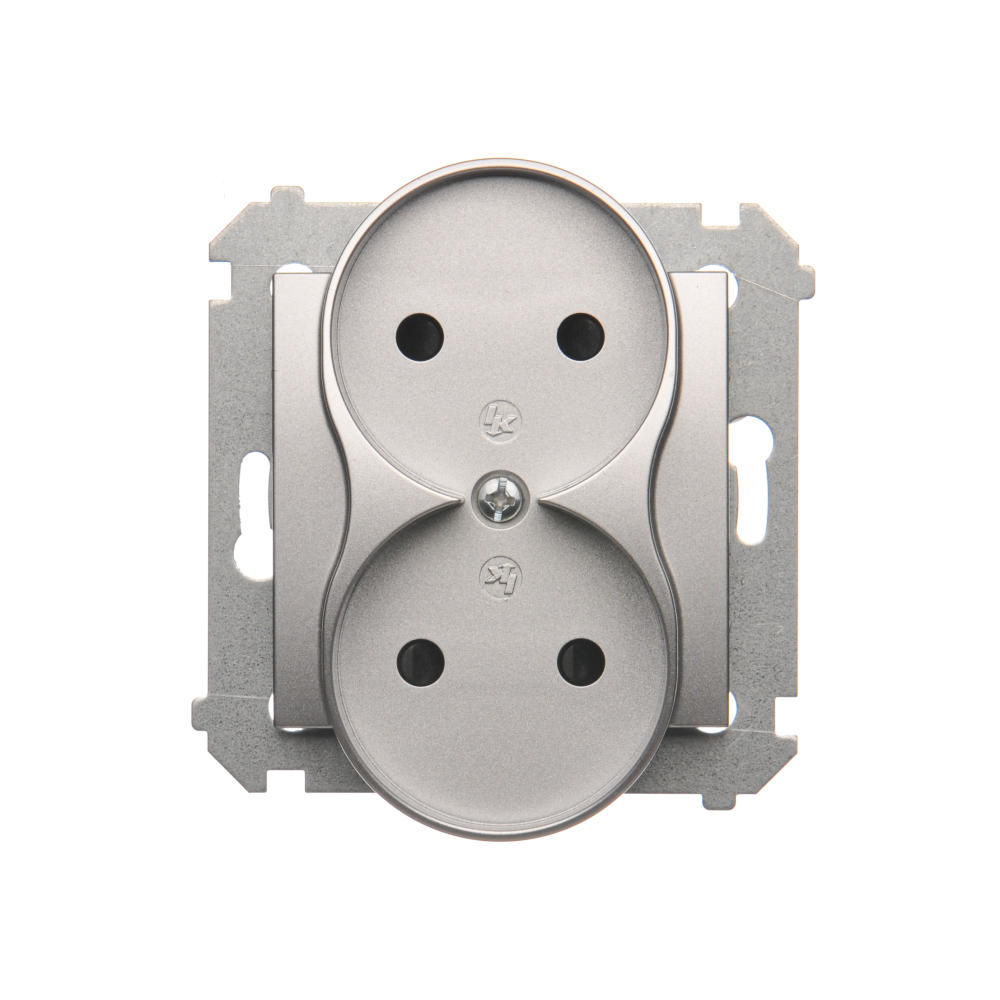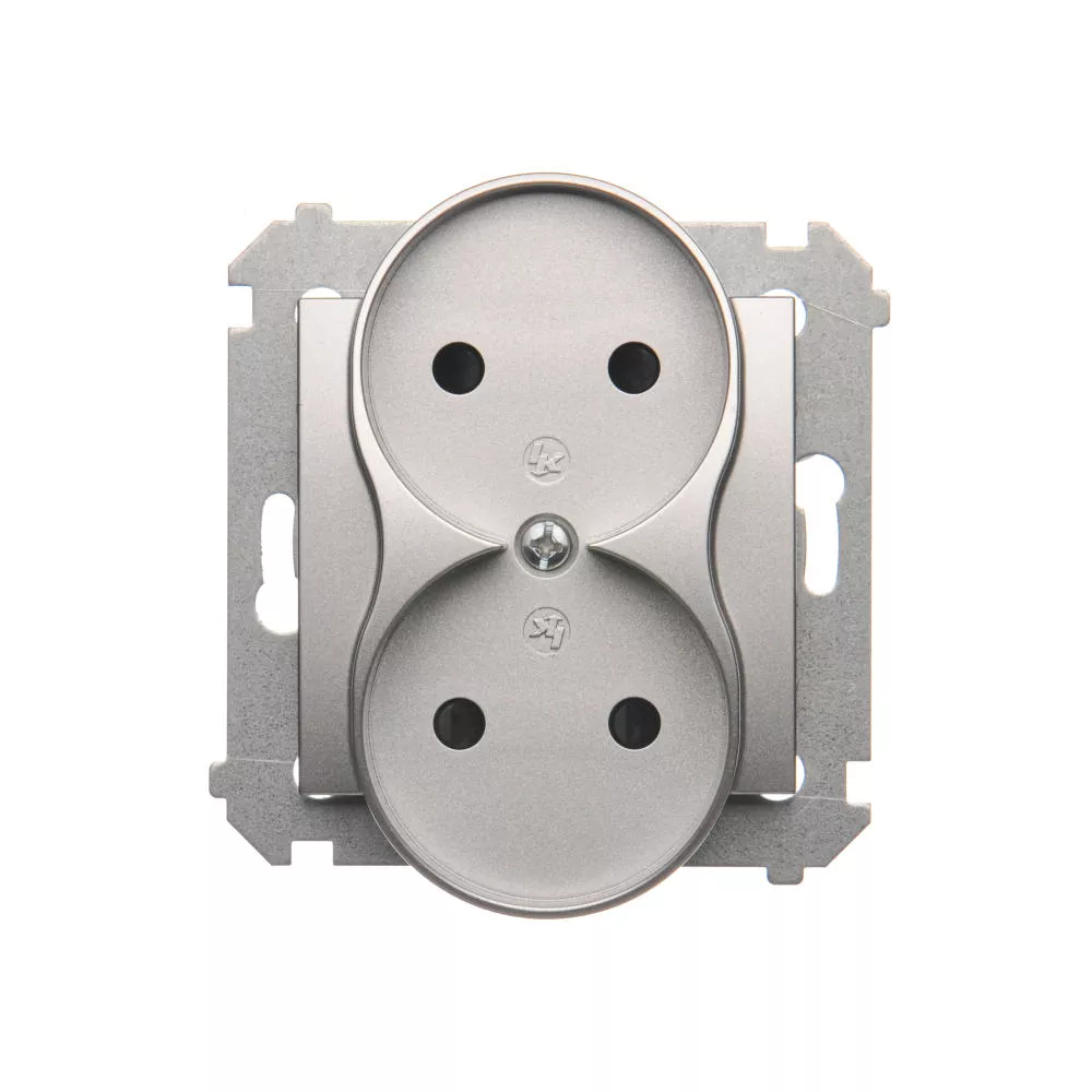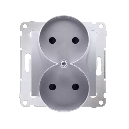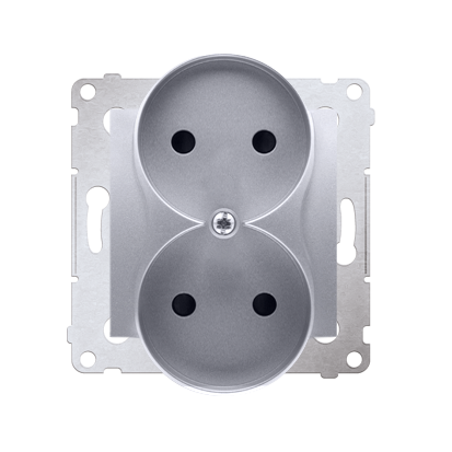 Simon 54 WMDW-00200M-043 Gniazdo wtyczkowe bez uziemienia z przesłonami podwójne (moduł) 16A, 250V~, zaciski śrubowe; srebrny mat Do ramek S54 PREMIUM