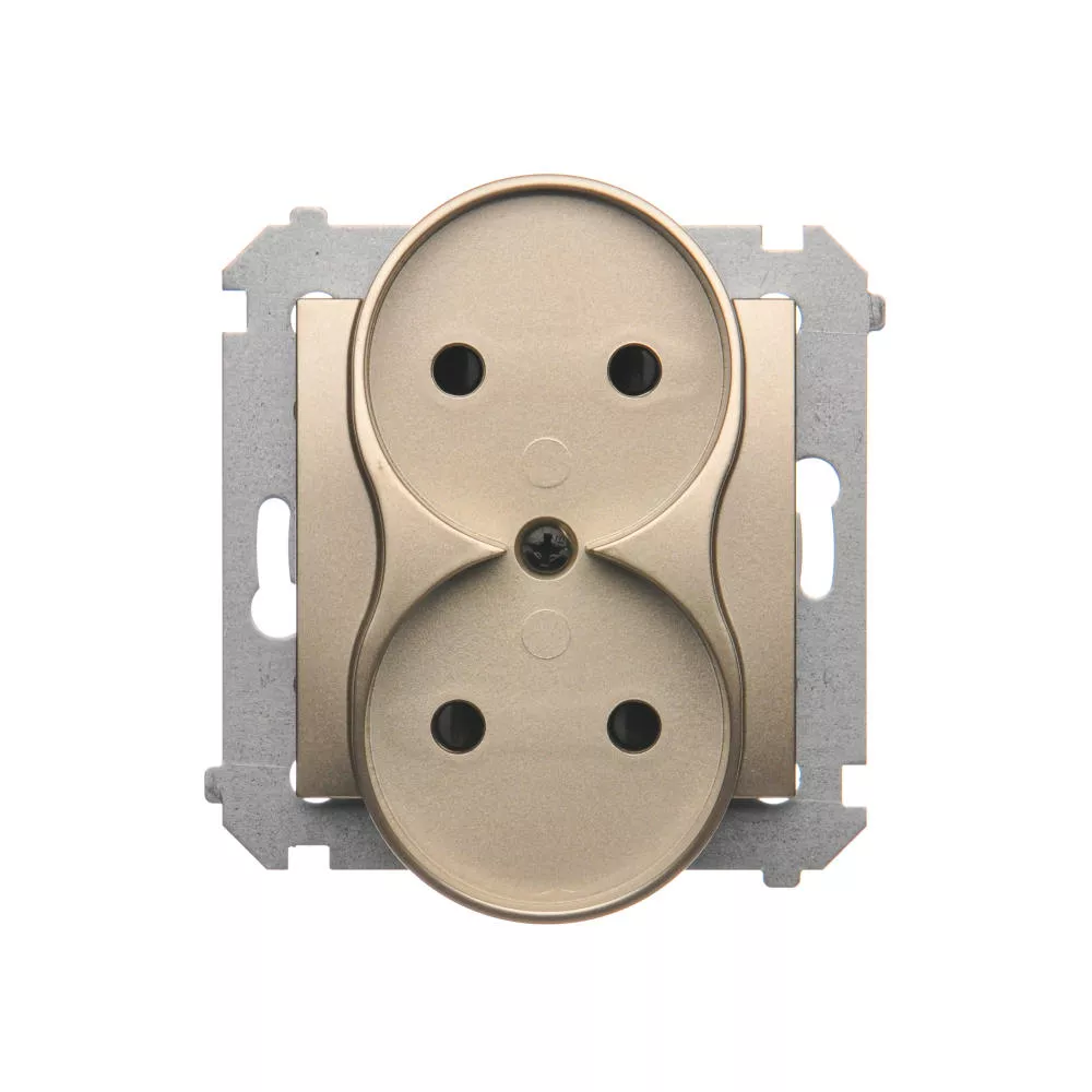 Simon 54 Nature WMDW-0020NM-044 Gniazdo wtyczkowe bez uziemienia z przesłonami podwójne do ramek NATURE (moduł) 16A, 250V~, zaciski śrubowe; złoty mat