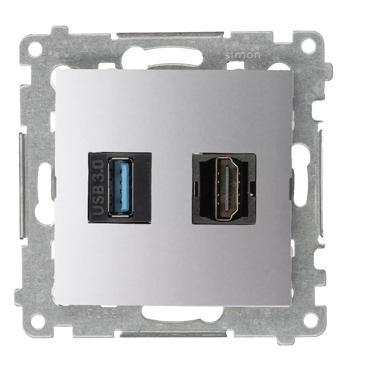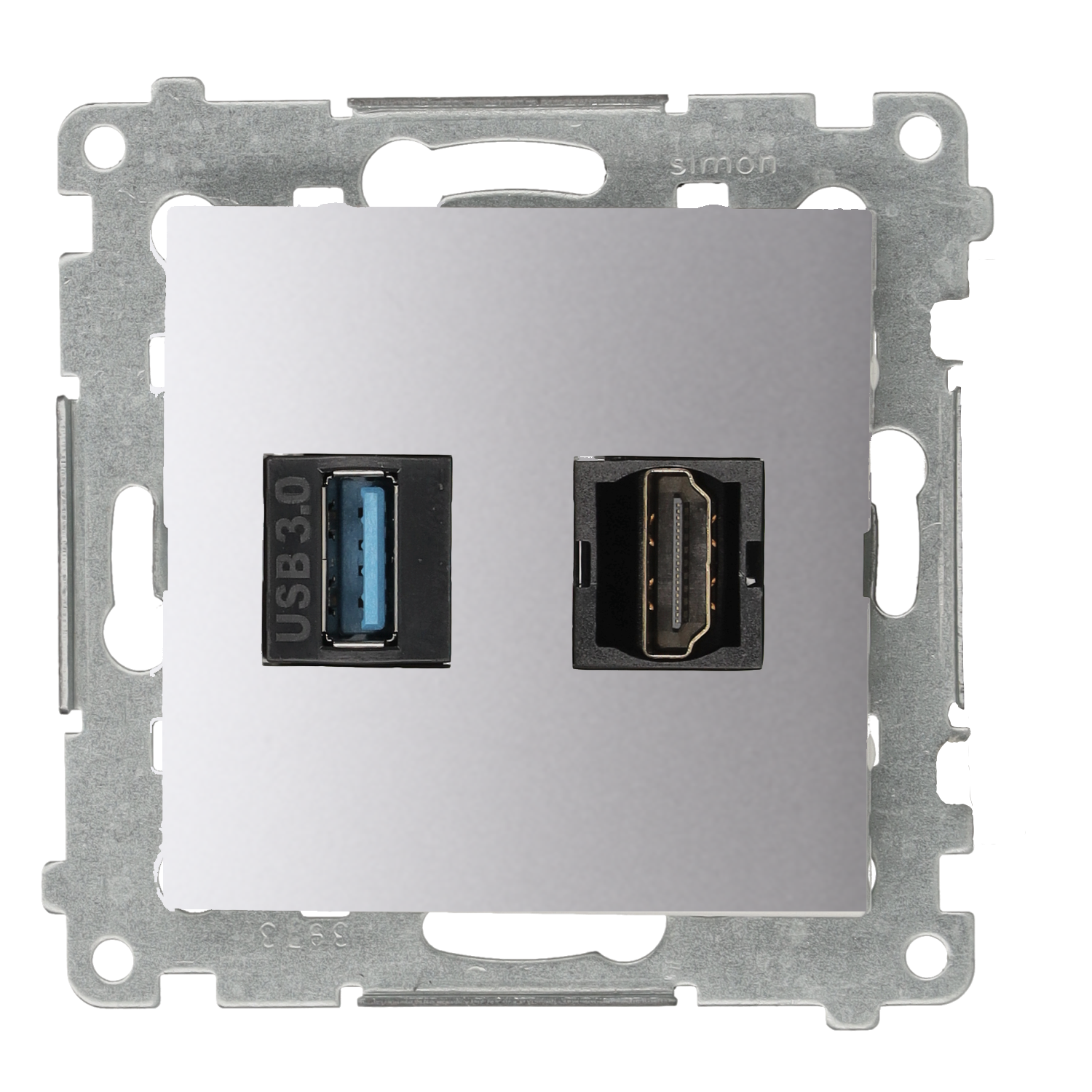 Simon 54 WMDH-0XXXX3-043 Gniadzo HDMI 1,4 + USB 3.0; srebrny mat