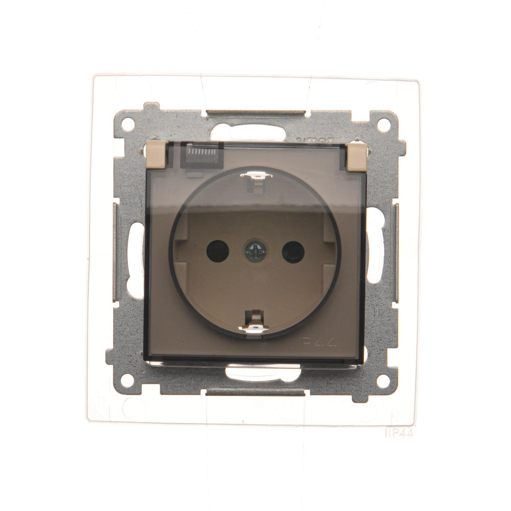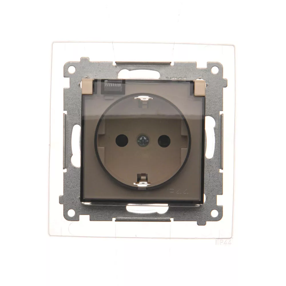 Simon 54 WMDW-521111-041 Gniazdo Schuko do wersji IP44 z przesłonami z uszczelką ramki (moduł) 16A, 250V~, zaciski śrubowe, klapka transparentna; kremowy