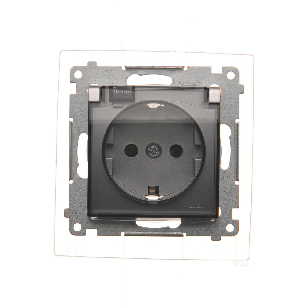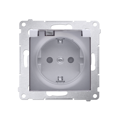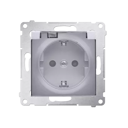 Simon 54 WMDW-521111-043 Gniazdo Schuko do wersji IP44 z przesłonami z uszczelką ramki (moduł) 16A, 250V~, zaciski śrubowe, klapka transparentna; srebrny mat