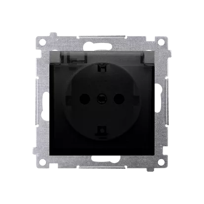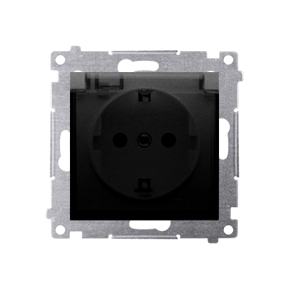 Simon 54 WMDW-52111x-049 Gniazdo Schuko do wersji IP44 z przesłonami z uszczelką ramki (moduł) 16A, 250V~, zaciski śrubowe, klapka transparentna; czarny
