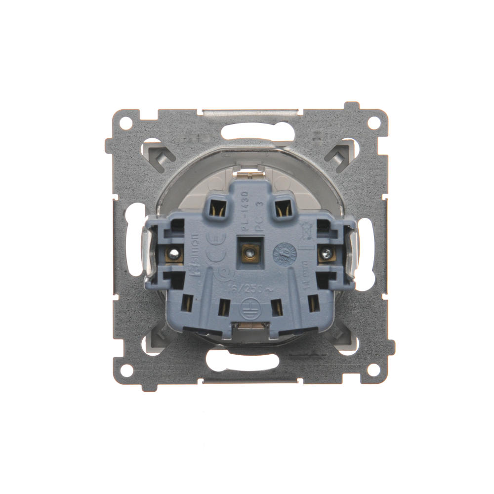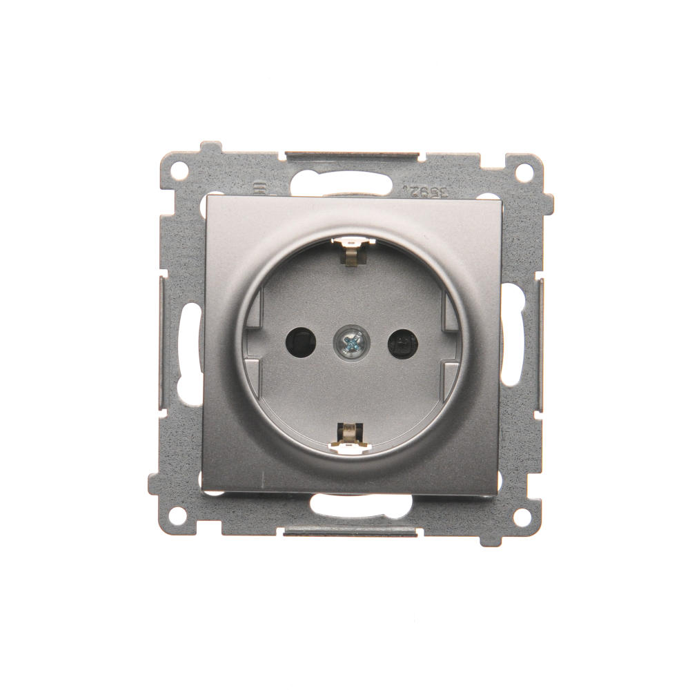 Simon 54 WMDW-03111x-043 Gniazdo Schuko z przesłonami (moduł) 16A, 250V~, zaciski śrubowe; srebrny mat