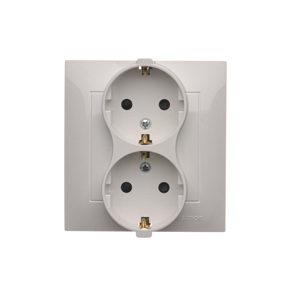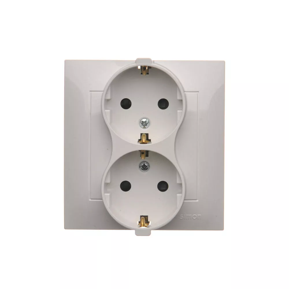 Simon 54 WMDW-12211N-011 Gniazdo Schuko z przesłonami podwójne 16A, 250V~, zaciski śrubowe; biały