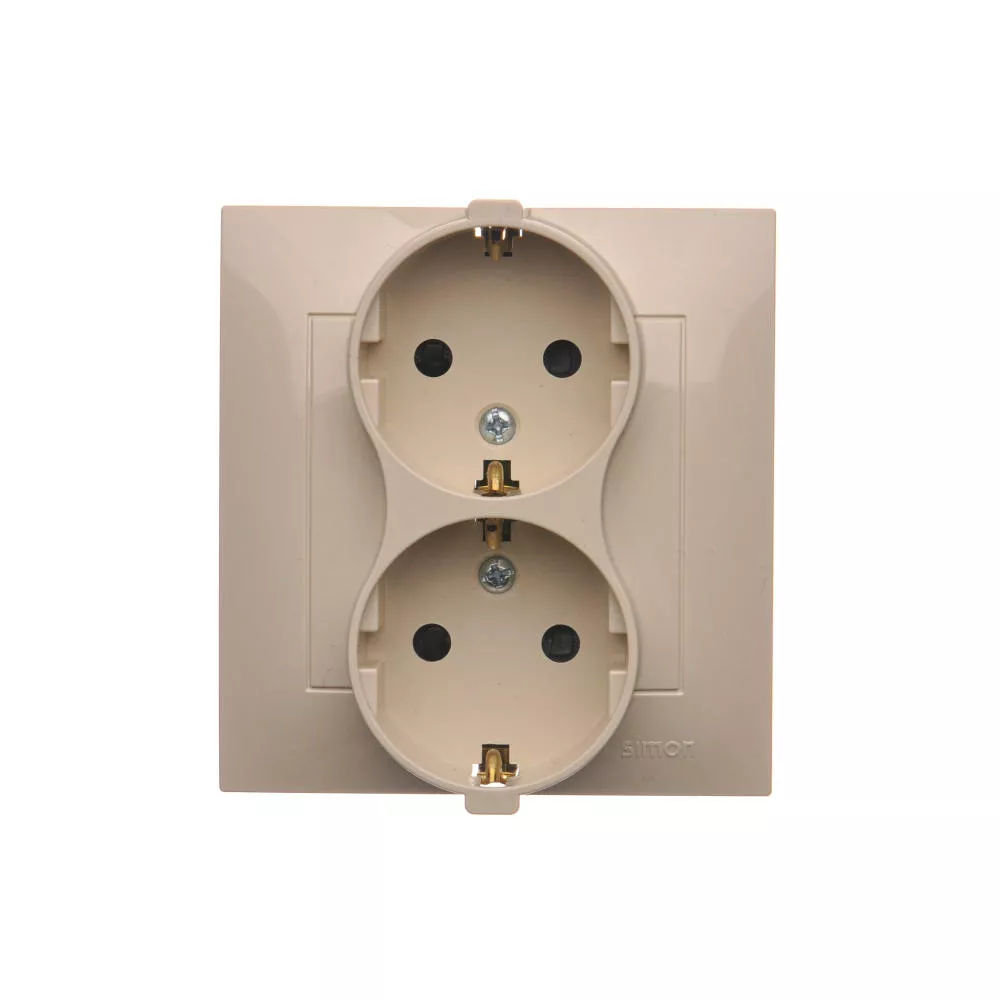 Simon 54 WMDW-12211N-041 Gniazdo Schuko z przesłonami podwójne 16A, 250V~, zaciski śrubowe; kremowy