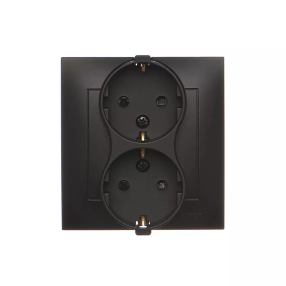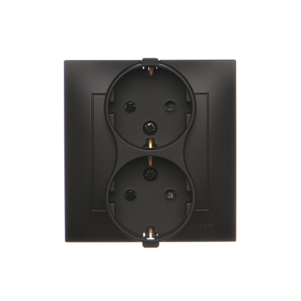 Simon 54 WMDW-12211N-049 Gniazdo Schuko z przesłonami podwójne 16A, 250V~, zaciski śrubowe; czarny