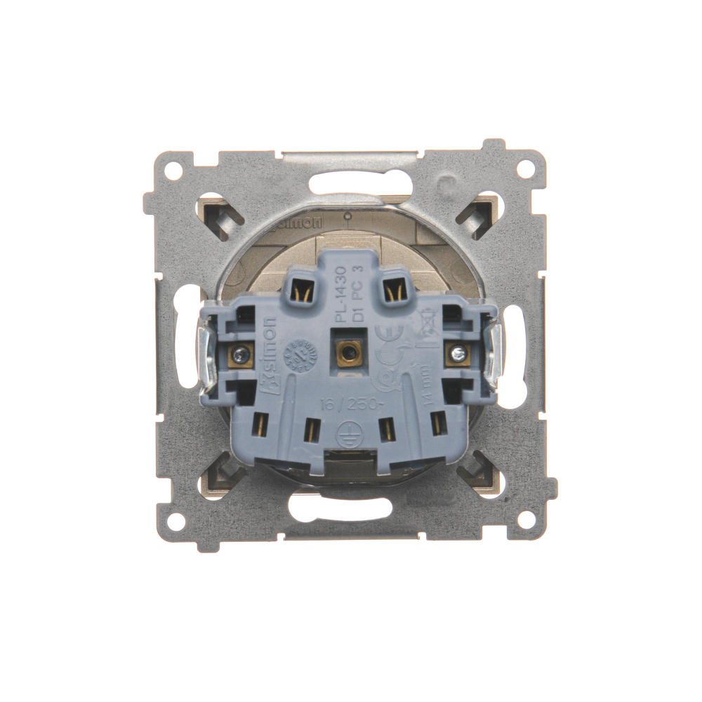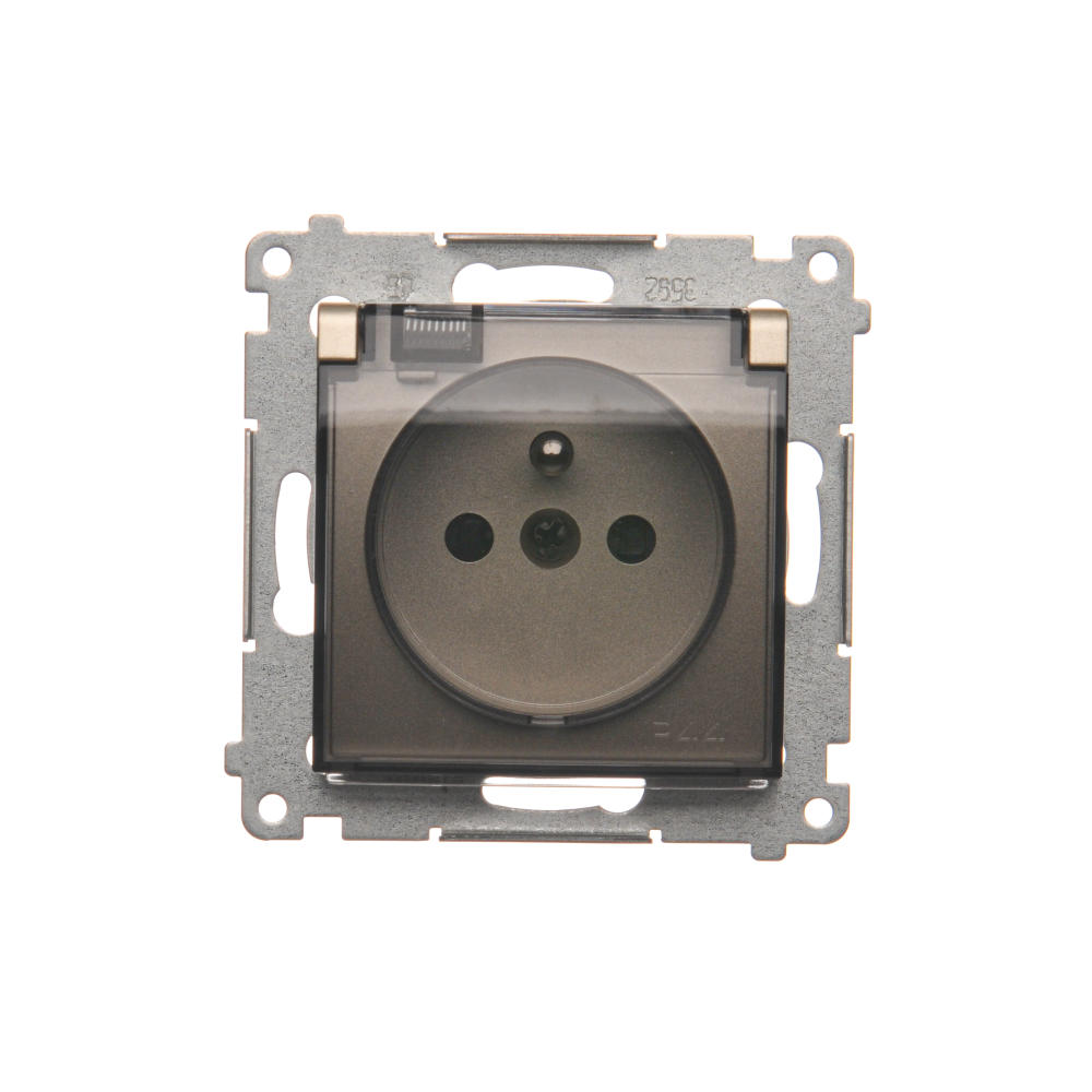 Simon 54 WMDW-53121x-044 Gniazdo wtyczkowe do wersji IP44 bez uszczelki (moduł) 16A, 250V~, zaciski śrubowe, klapka transparentna; złoty mat Wymagana uszczelka ramki
