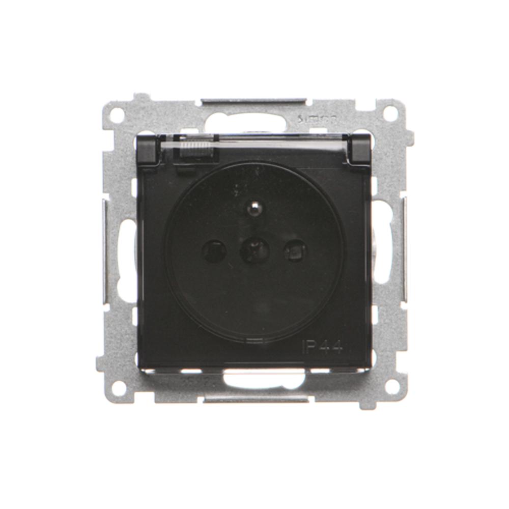 Simon 54 WMDW-53121x-049 Gniazdo wtyczkowe do wersji IP44 bez uszczelki (moduł) 16A, 250V~, zaciski śrubowe, klapka transparentna; czarny Wymagana uszczelka ramki